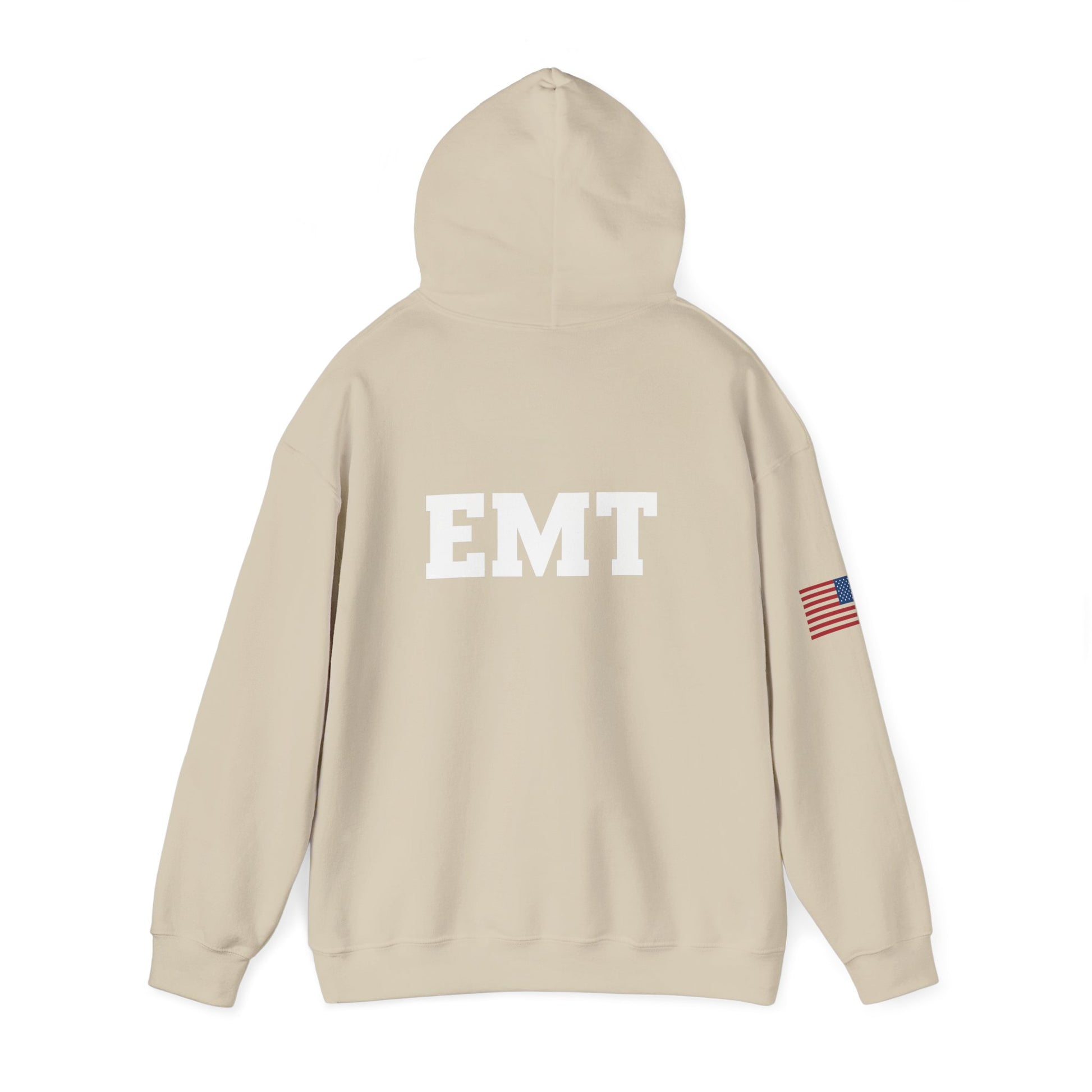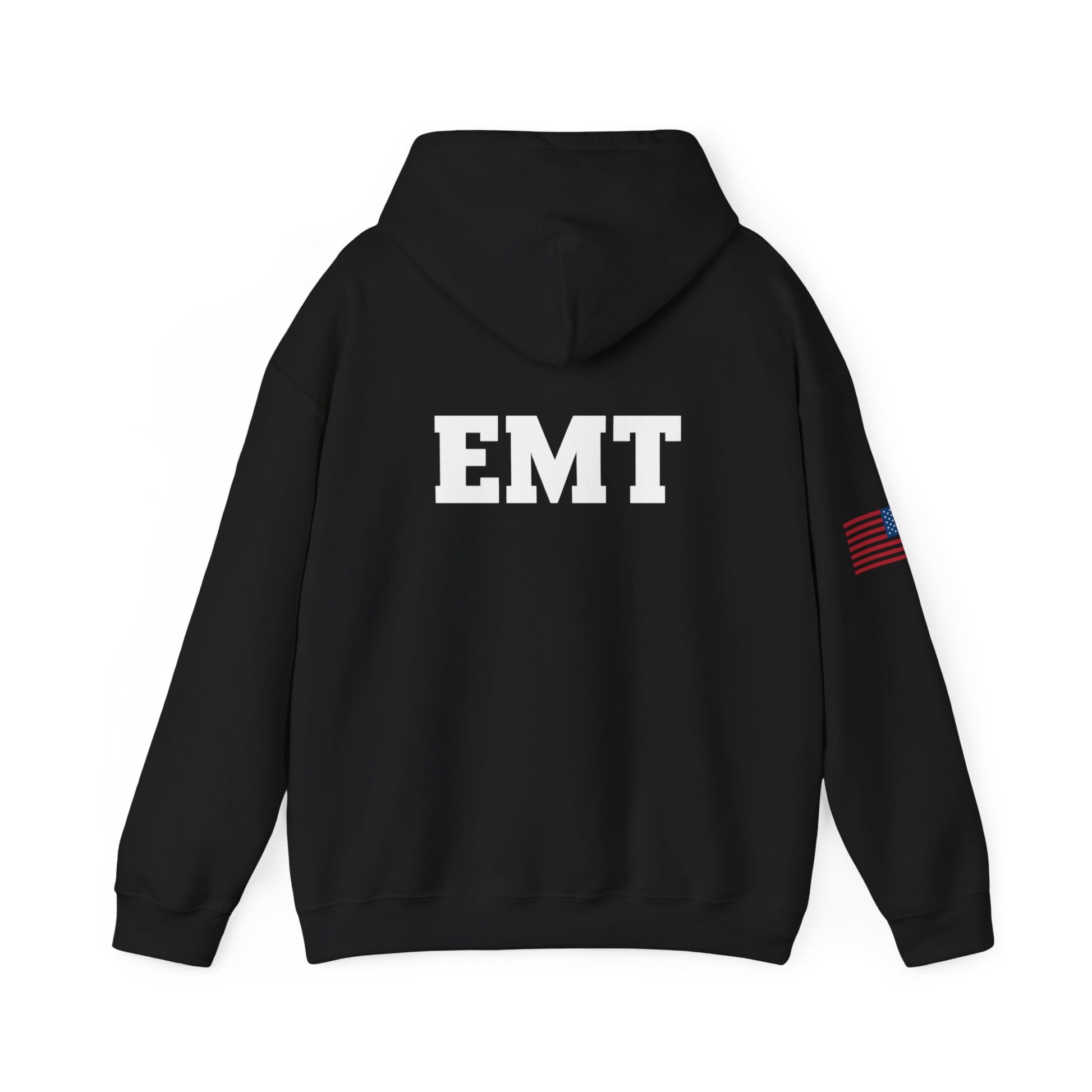 This cozy hoodie feels like the calm after a chaotic call. Built from a warm 50/50 cotton-poly blend, it settles into your routine—shift mornings, late-night runs, or weekend training. A bold EMT block on the back announces your role without shouting. The front emblem—a firefighter-style Maltese cross reimagined with a barbell and the phrase “So Others May Lift”—honors the physical strength and steady care you bring to every scene. Subtle flag detail on the sleeve adds quiet pride. Soft inside, double-lined hood, and a roomy kangaroo pocket make it an easy layer when you’re debriefing with the crew or heading out for a quick workout.